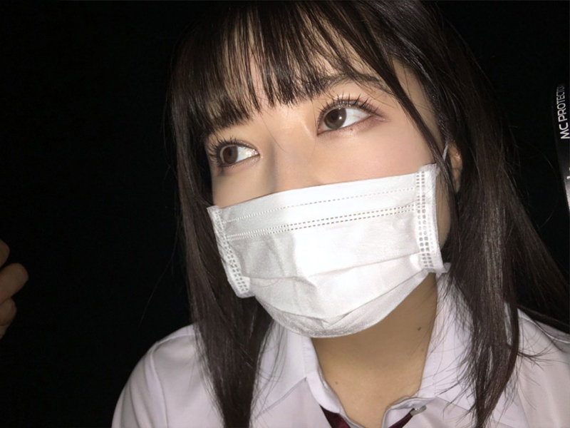23:02~スカートを捲る。シャツのボタンを外す。腿撫で。おっぱい揉み。マスクを外す。キス。